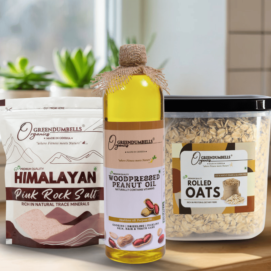 Power up your day with Rolled Oats for energy & fiber, Peanut Oil for heart-healthy cooking, and Himalayan Rock Salt for natural minerals & balance. A complete blend of nutrition and taste—crafted to keep you fit, strong, and energized!