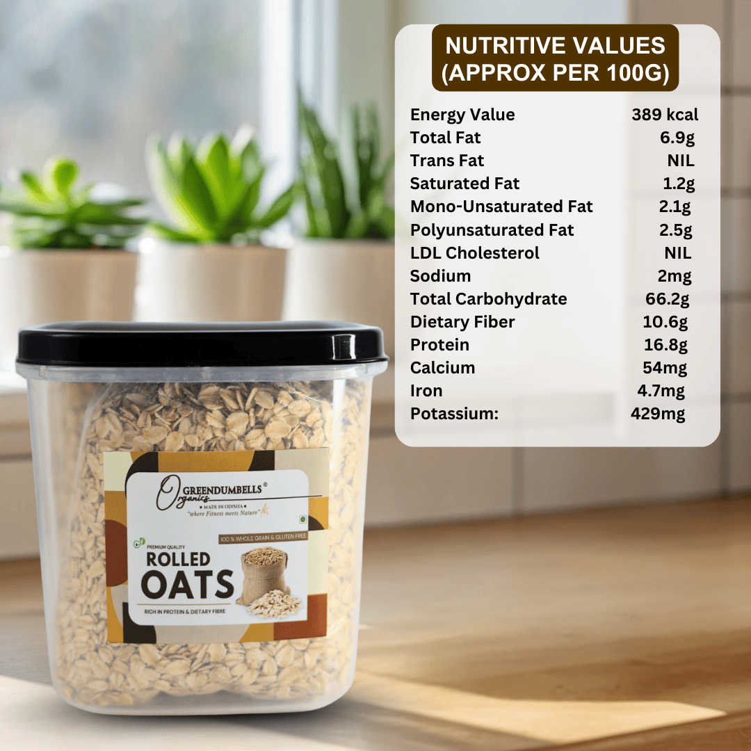 DESCRIPTION: Our Jumbo sized Rolled oats are least processed and absolutely farm produce assuring its hygienic handling till it reaches to you. NO flavouring agent & NO chemical additives, we deliver just the way nature provides.Its quality and taste will add depth to your culinary adventures, elevating your fitness diet to new heights.