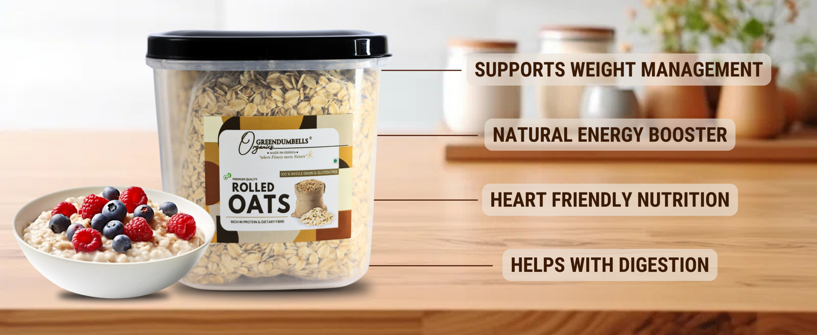 Jumbo Rolled Oats 850g | High Fibre & Protein | GreenDumbells
